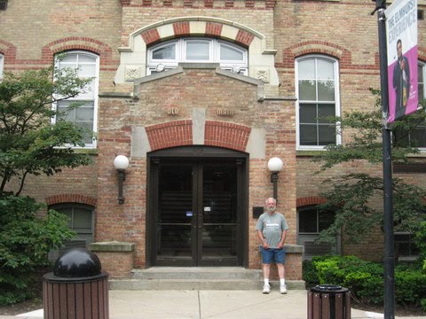 With Daddy pointing the way and my stepmom driving, we came upon his rebuilt elementary school no longer surrounded by tall grassy fields. Three houses stood where my grandmother’s tall old brown house had been, the giant horse chestnut trees only shady memories. It was now an unrecognizable place that meant nothing to me, but on the next street over we were delighted to find the little brick house my father was born in. Somehow he had neglected to ever show that to us! Farther on we discovered Daddy’s high school and the beautiful brick facade of his college’s Old Main. He pointed to the window of his English class room.