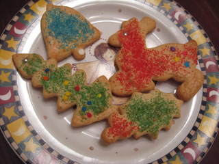 I’m not worried about the Christmas tree problem, but I’m here at the computer, eggnog cookie in hand, wondering if my kids will grow up to make these cookies like their mother and grandmother did. I don’t think they have ever been that fond of the cookies, but using the cookie cutters and decorating with colored sugars and silver dragees sure was fun. When I was little I thought the same. As an adult who doesn’t like too-sweet treats, I now love those cookies and the memories they bring of my mother rolling and cutting and my sister and I sprinkling sugars.