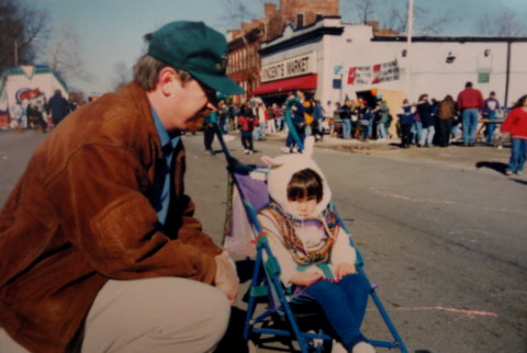 We have taken the kids to the St. Louis Mardi Gras parade a couple times, to the Krewe of Barkus pet parade and the wiener dog races once. We went to the tail end of the parade route, right by Anheuser Busch (now In-Bev) where the crowd was much smaller and the debauchery almost nonexistent (a bit of drunken swearing). Best part about having little kids at the end of the line is the colorful folks on the floats throw all the leftover beads to them – the girls were happily covered with cheap sparkling necklaces! The photos remind me of all my favorite New Orleans memories.