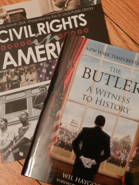 Wil Haygood, journalist and author of The Butler: A Witness to History, was the keynote speaker today at the St. Louis Public Library, formally starting off Black History Month in St. Louis. Formally, because programs started on the first of February, and a free screening of The Butler movie was a few days later. I missed the movie and will have to see it, but I have Wil’s book, surprisingly slim at 95 pages including photos from the movie and an essay about African Americans portrayed in Hollywood movies. I had expected some big biography, but Eugene Allen, the butler, died only 16 months after Wil Haygood first spoke with him. And sadly, Helene Allen, Eugene’s wife, had died in her sleep only a few days after that first meeting. The book is about Haygood’s experiences finding and befriending Eugene and about the filming of the movie, which is not about the real Eugene, but incorporates some of his stories.