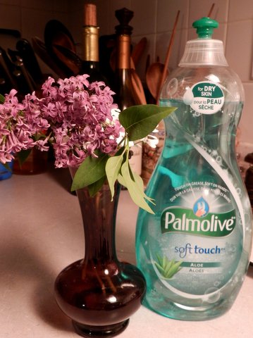 I think we all know that certain scents trigger memories. Certain foods cooking, cinnamon, grandmother’s perfume, lilacs, even Aquanet hairspray (think 1980s big hair days), but how about dishwashing liquid? I got out a new bottle of Palmolive dishwashing liquid last week—soft touch aloe (for dry skin)—and went into some kind of reverie. What was it about the smell? Clean and sweet, not overpowering. The scent makes me pause and breathe in deeply, so I think it must be tweaking some kind of forgotten memory. Maybe I’ll figure it out, but I sure am enjoying washing the pots and pans these days!