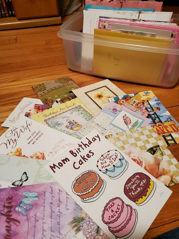 It’s hard to be completely ruthless. Each adult child will get a neat and organized pile of report cards, adorable drawings (highly curated), and their first-year baby book. I took photos of some of their art which won’t take much space in my computer. I kept one shoebox of greeting cards given to me with special handwritten messages, mostly from my kids. Re-reading those brought me so much joy that per Mari Kondo I had to save them. I plan to bask in reading them again someday as I sit in a rocking chair in a senior apartment.