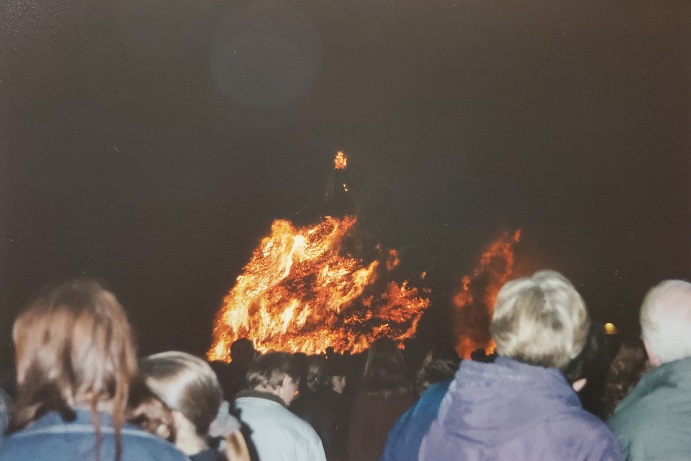 My memory is not that great. I had help from the first calendar planner I ever kept. Yes, the print kind because cell phones weren’t invented yet. (But I still use paper hanging calendars and paper planners.) Thank goodness I decided to keep a planner while we were in the UK. The photos brought back wonderful memories, but the planner functioned as a kind of journal, with brief entries telling daily life details, where we went and with whom, who was visiting. I could follow the route we took through Wales and with the help of Google Maps I found the name of the trail that led to a rocky beach. I found the date my friend and I went to see Maya Angelou and got our books signed. I learned the name of the village we went to one night to see Guy Fawkes burn on a huge bonfire after being carted down cobblestoned streets, accompanied by torch-bearing townsfolks—positively medieval!