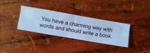 I made copies of My Crazy Trip to Japan for me and my fellow travelers (so four copies, and one .pdf emailed to my world-travele niece who has not settled anywhere). I used premium color—the color photos I thought would turn out fine using regular color printing did not turn out fine. Always order one proof copy to check! My dad found out about the book and wanted one so Lulu shipped one to him. He called me halfway through reading to tell me how much he was loving it, and he loved my writing style. I posted about this on Facebook and included a photo of a fortune cookie message I’ve saved. I got plenty of requests to read the book! A future project may be to scrub identifying personal family details out and upload an ebook to Kindle Direct Publishing (Amazon).